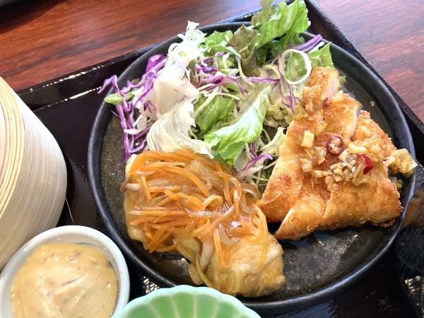 チキンカツは油淋鶏風、魚餡掛けは白身魚がふわふわ。