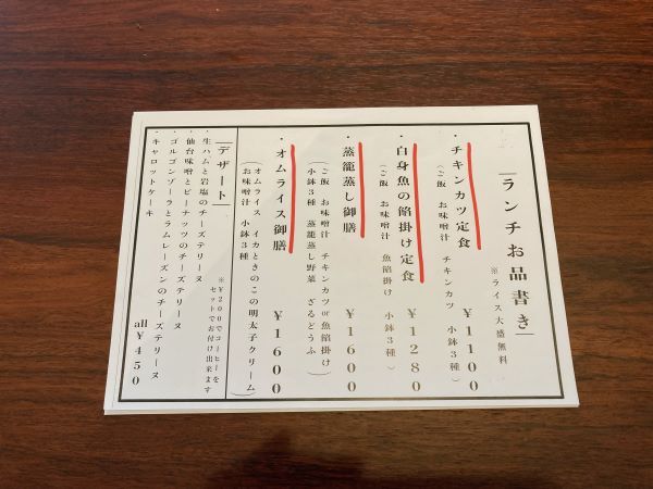 平日ランチお品書き