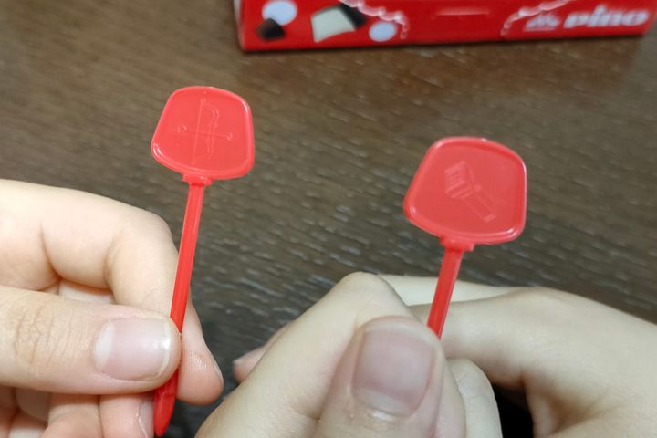 見えにくいですが、ピックに秘密道具の絵が書いてあります。