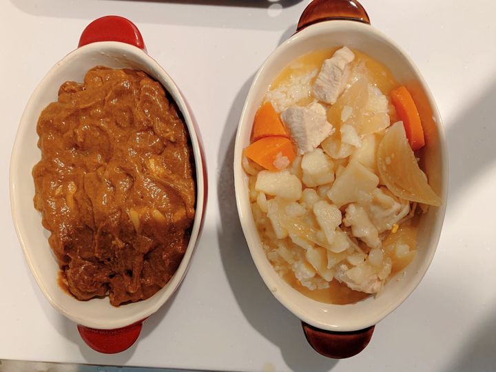 もう一品、残っていた肉じゃがもご飯の上に被せたら完成まであと少し!