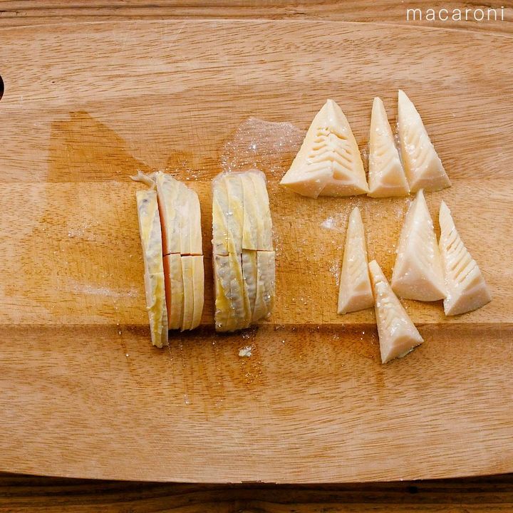 たけのこは少し厚めにカットすることで、コリコリした食感が楽しめます。