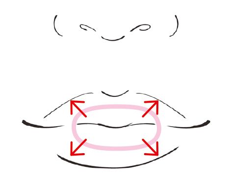 内側に直塗りしてから、毛先がラウンドしたアイシャドウブラシかスポンジ(なければ指でもOK)で実際の唇より外側に塗り広げ、輪郭をボカす。
