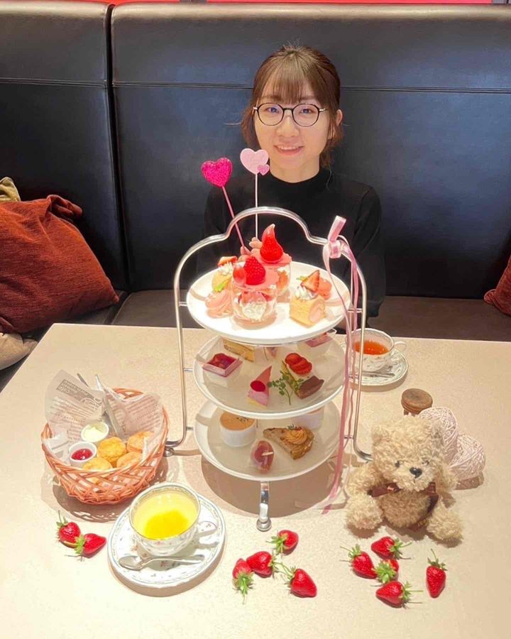 写真撮影を思う存分楽しみ、待ちに待ったいちごのアフタヌーンティーをいただきました。旬のいちごをさまざまなスイーツに取り入れたいちごづくしのアフタヌーンティーは5月末までの提供です。