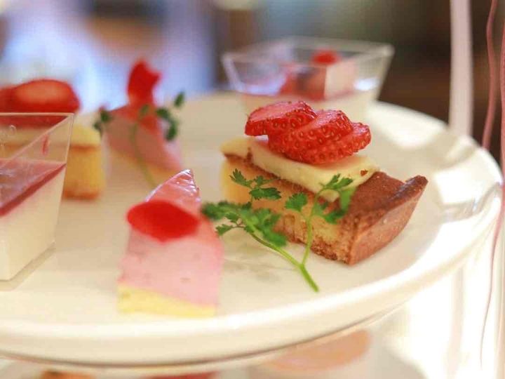ケーキスタンドの2段目には、いちごのタルトやパンナコッタが。いちごを使ったスイーツは甘酸っぱい美味しさと、ピンクやレッドの見た目が乙女心をくすぐりますよね。