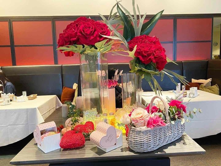 メルヘンなお花が入ったバスケットや、ハートの置物などもあり、自分好みにアイテムを配置してアフタヌーンティーを撮影することができます!
