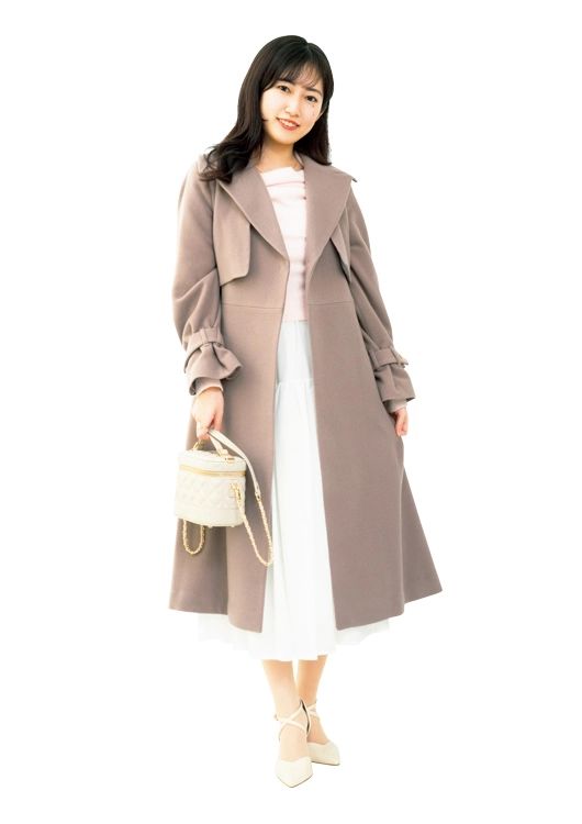 「パステルカラーのニットで気分が上がる春をイメージ!ミラオーウェンのスカートはやわらかい質感がほどよい甘さを演出してくれるのでお気に入り。アウターはきちんと感のある素材を合わせて、シルエットにメリハリが出るよう意識しました」(金融会社勤務/及川未歩さん・25歳)