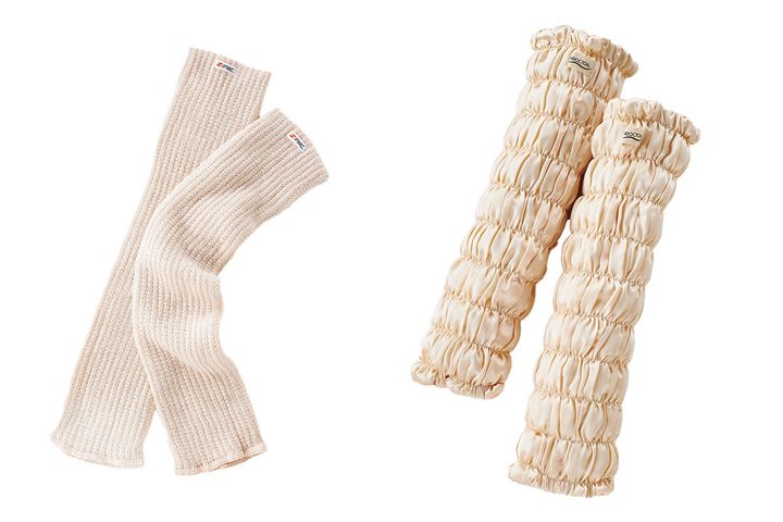11種類の天然鉱物配合の中わたが体温と反応。輻射熱を体の内部まで放射し外に逃がしません。イオンドクター シルクレッグウォーマー ベージュ¥26,180(ジェイ・エス)