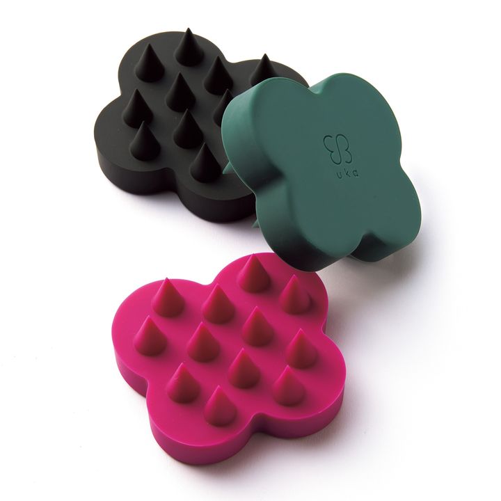 仕事柄健康や環境などに気を遣われている方への手土産が多いので、愛用して効果があった物を、その良さを伝えながら手渡します。硬さが選べる頭皮マッサージ用ブラシは、ヘッドスパに行ったように頭が軽くなるので、男女ともにおすすめできる一品です。スカルプブラシ[黒/レギュラー、緑/バリカタ、ピンク/ソフト]各¥2,420(uka Tokyo head office)