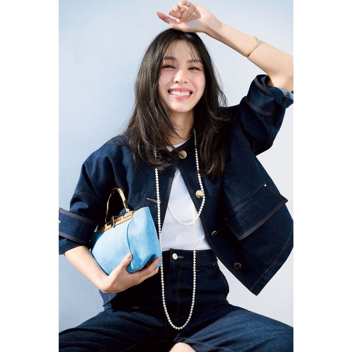 着るだけできちんと見えるノーカラーのジャケット。マッキントッシュから登場した金ボタンのタイプは華やかで、いろいろなボトムスに似合う短丈なのも魅力的。VERY本誌でもたくさん紹介されています。