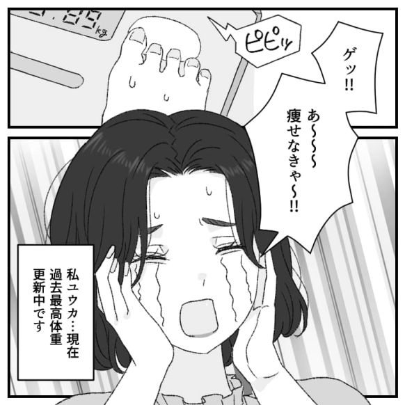 主人公は過去最高体重を更新し、ダイエットを決意しますが…?