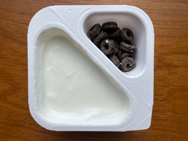 酸味が控えめで甘さの強いヨーグルトはバニラのようでこれだけでもすごく美味しいです。ヨーグルトはいずれも同じ味で、シリアルの種類がチョコやグラノーラなどいろいろな味を楽しめるんです。クッキー&クリームはリング状のシリアルとマシュマロクッキーが入っていました。チョコというより優しい甘さでコーンフレークのような食感が楽しめます。ヨーグルトにしばらく浸かるとこの食感がなくなってしまうので、早めに食べるのがよさそうです。