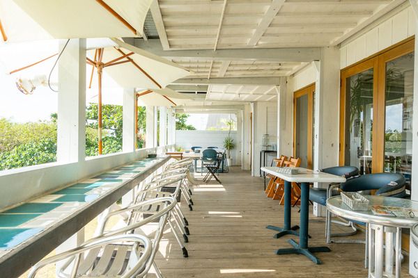 店内のテーブル席のほか、テラスには海が見えるテーブル席とカウンター席があり、絶景ランチが楽しめます。