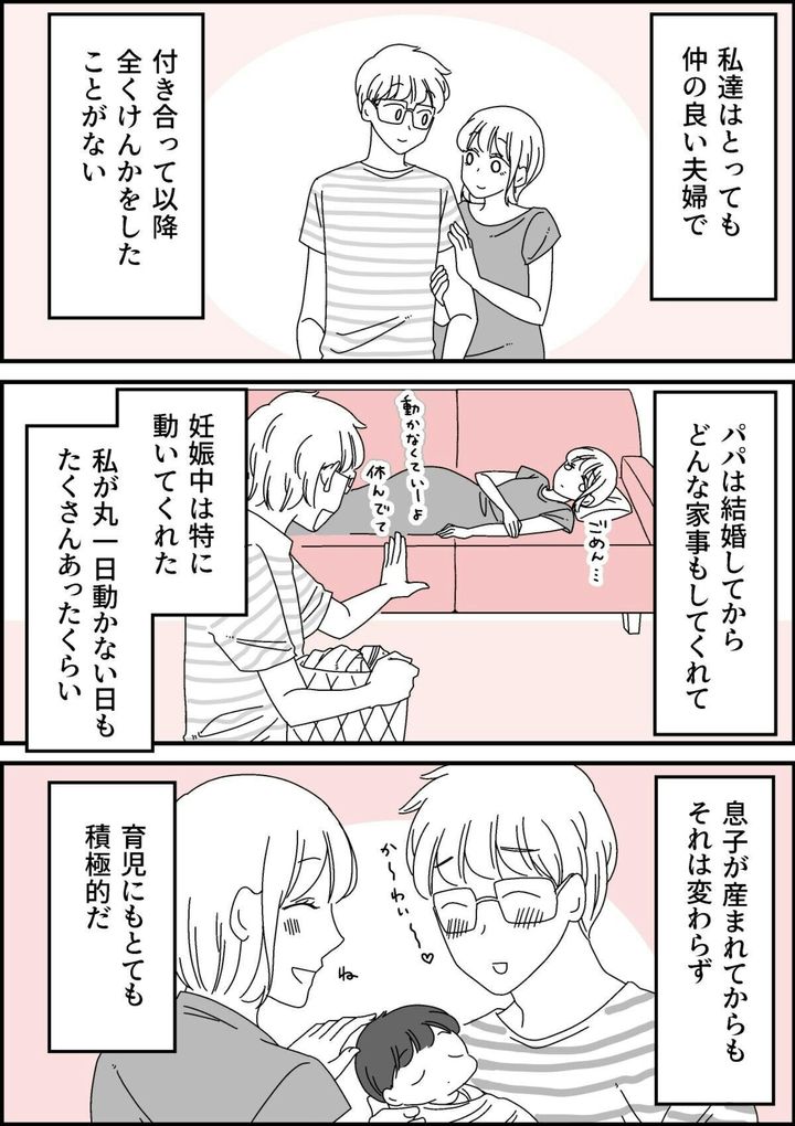 育児にも家事にも積極的な夫。そんな夫とまことさんはもちろん喧嘩なんてしたことはありません。それはずっと変わらないと思っていたと言います。