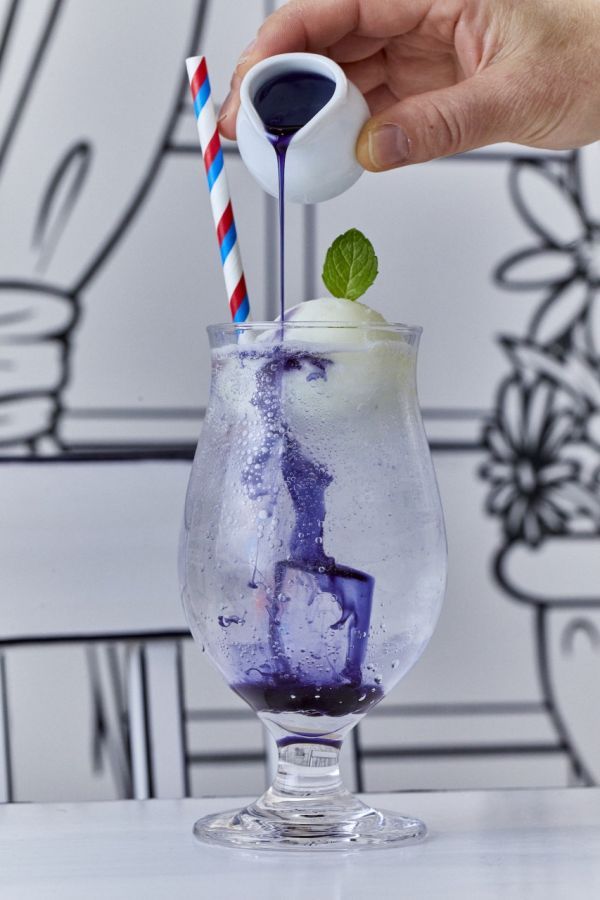 フレーバーには、青紫色が美しいバタフライピー、アイスはレモンをチョイス。すっきりとしたのど越しのさっぱりとしたクリームソーダです。