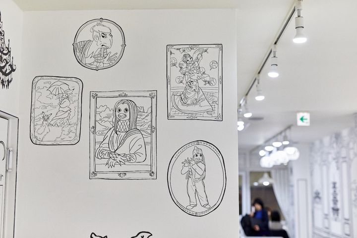 店内のアートはすべてオーナー自らが描いたもの。開店時の世相を感じさせるアマビエモチーフや京都の名所を描いたモチーフなど隠し絵探しが楽しめます。
