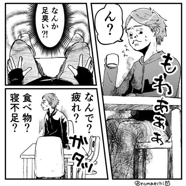 なんか臭い・・え、私の足?(汗)思わず嗅ぐも・・ニオイの発生源は別の場所だった。|ぬまえの育児漫画