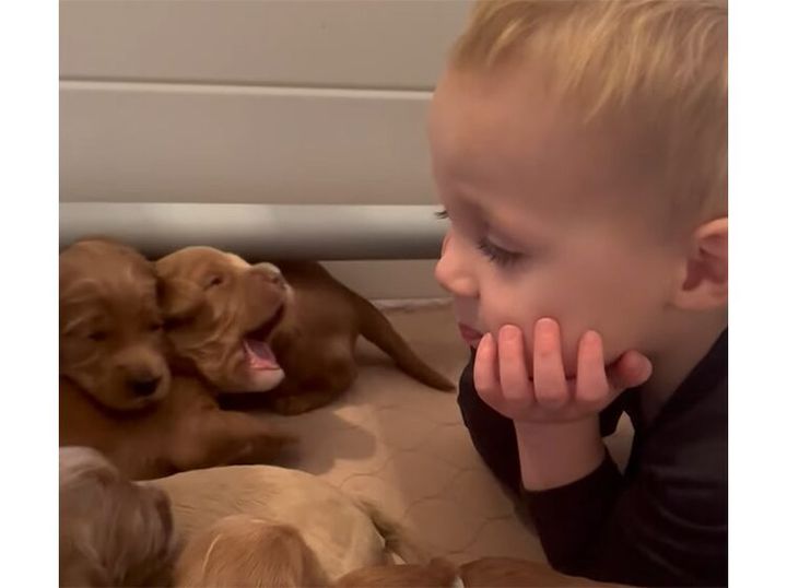 みんな可愛いね♡ 子犬たちを見てうっとり。