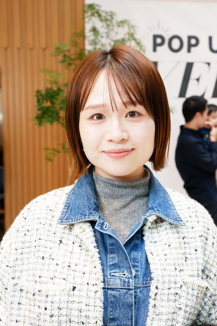 「10年以上ロングヘアでしたが、身長158cmと小柄なため、ボブヘアのほうが洋服とのバランスが取りやすいことに気づき、昨夏にバッサリ切りました。ヘアアイロンで毛先を外ハネにしたら、根元と毛先にヘアオイルを塗布してツヤ出ししています」髙師このみさん・33歳(5歳の男の子ママ)