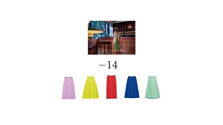 ≫【全14着の一覧へ】 「シンプルなトップスに似合う」スタイルUP設計のキレイ色スカート
