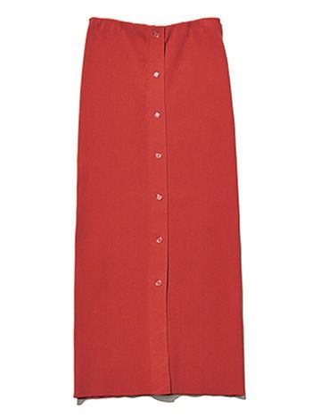 赤スカート/アダム エ ロペ マットでこっくりとした色味の赤。Tシャツやカットソーに合わせるだけで、カジュアルにドレスアップ。伸縮性のあるリブニットなのでIシルエットでも動きやすい。