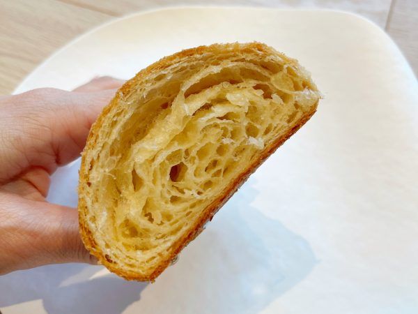 そして、クロワッサンもおすすめ♪(380円) 幾重にも重なったパリパリ食感の生地は、噛むたびに小麦の甘みや旨み、そして香りが口いっぱいに広がります。