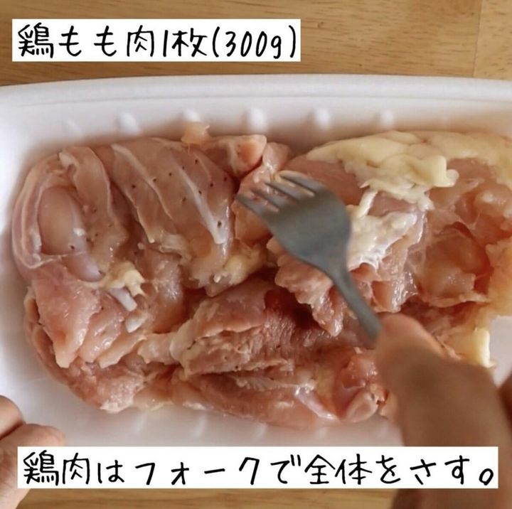 鶏もも肉は全体をフォークで刺す。