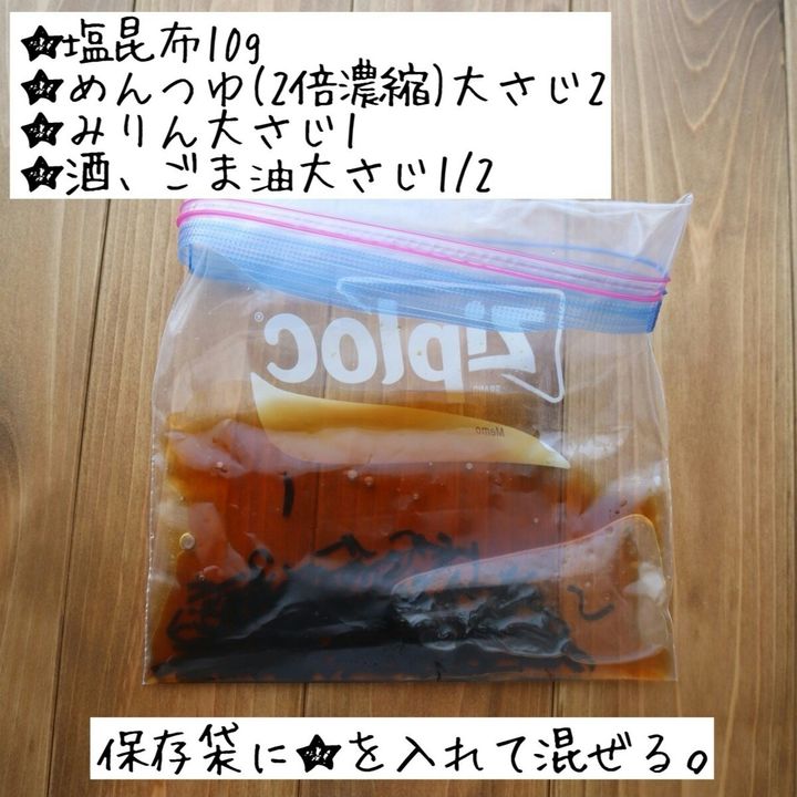 保存袋に★を入れて混ぜる。