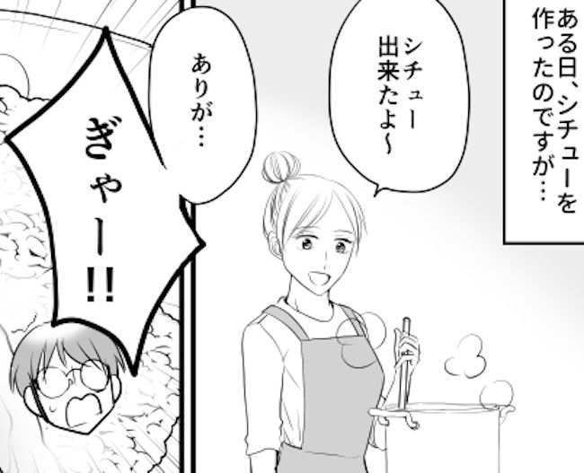 「結婚すると、食生活の好みで意見がわかれる」と聞いたことがありますが、私たち夫婦にもそれが実際に起こりました。夫と一緒に食事をしていると、お互いの育ってきた家庭の違いからか、びっくりすることがたくさんあったのです。ある日、私がシチューを作って食卓に出すと、夫がそれを見て「ぎゃー!!」と叫び……。