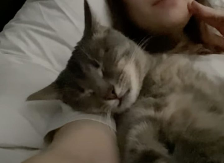 3. 楽しい夢をみているのかな?むにゃむにゃ寝言を言う猫。