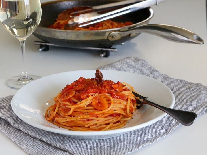 ワインがすすむシンプルおつまみパスタ「にんにくとオレガノのトマトソースパスタ」