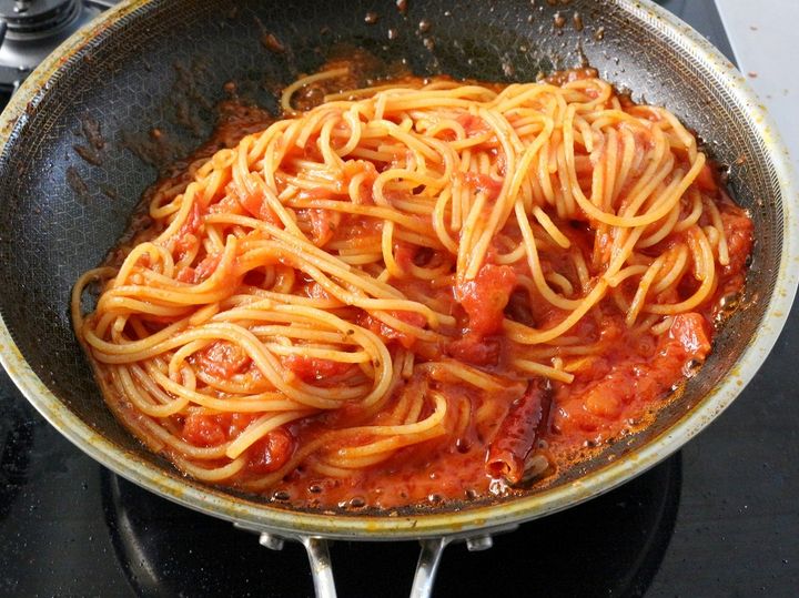 3. ワインがすすむシンプルおつまみパスタ「にんにくとオレガノのトマトソースパスタ」