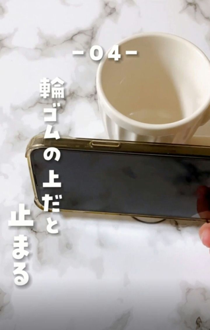 そんなときは、スマートフォンの下に輪ゴムを置いておくことで滑り止めの効果があり、安定して立て掛けることができます。メイク直しのときに鏡を立てかけたいときにも使えそうですね。