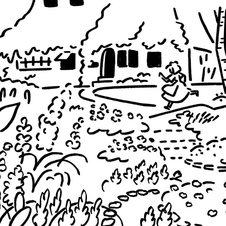 「植物や花との向き合い方が美しい」というテーマをいただいたときに、ぱっと頭に浮かんだのがこの作品でした。背景を担当した美術監督・大野広司氏のインタビュー記事によると、キキの故郷の家の庭の草花はスウェーデンの現地取材に基づいた正確な植生を描いており、キキが訪れる街「コリコ」はゴットランド島や首都のストックホルムの街並みを参考にしているそうです。そのため、花の季節感や色合いなどが矛盾なく描かれており、架空の街並みにも調和を感じるのかもしれません。