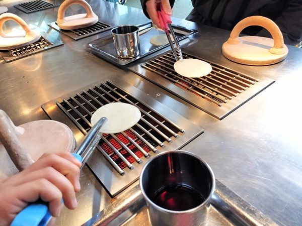 訪れた「山香煎餅本舗 草加せんべいの庭」では、”お煎餅の手焼き体験”(せんべい2枚で1人715円)が楽しめます。