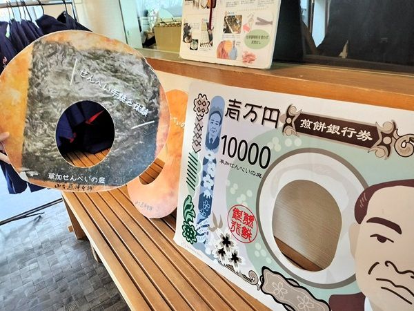 手焼き体験は、36名が同時に体験可能ですが、万が一混んでいるときでもせんべいの販売店や軽食コーナー、ポップアップでの写真撮影などもあるので待ち時間も楽しく過ごせますよ。