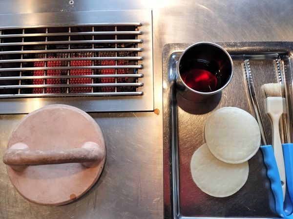 お店の方から焼き方を教えてもらい、さっそく焼いてみます!