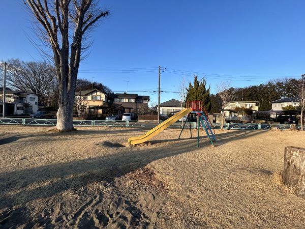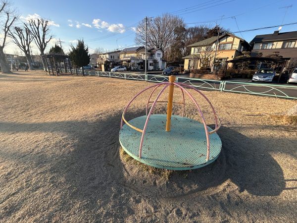 こちらの公園は三角の形になっており縦に少し長い形になっています。住宅街にある公園ですが広々としていて小さい子も大きい子も幅広く楽しめます。