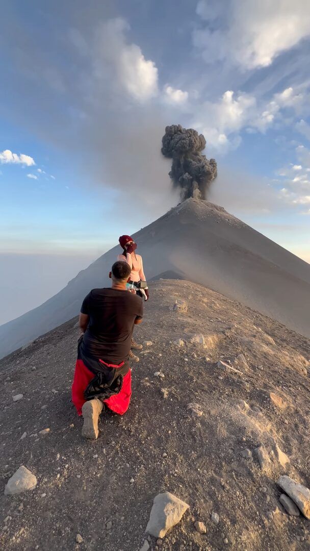 恋人にサプライズでプロポーズを決行したその時、背後で火山が噴火した!? タイミングが重なって生まれたスペシャルな瞬間は、こちらの動画からご覧いただけます。