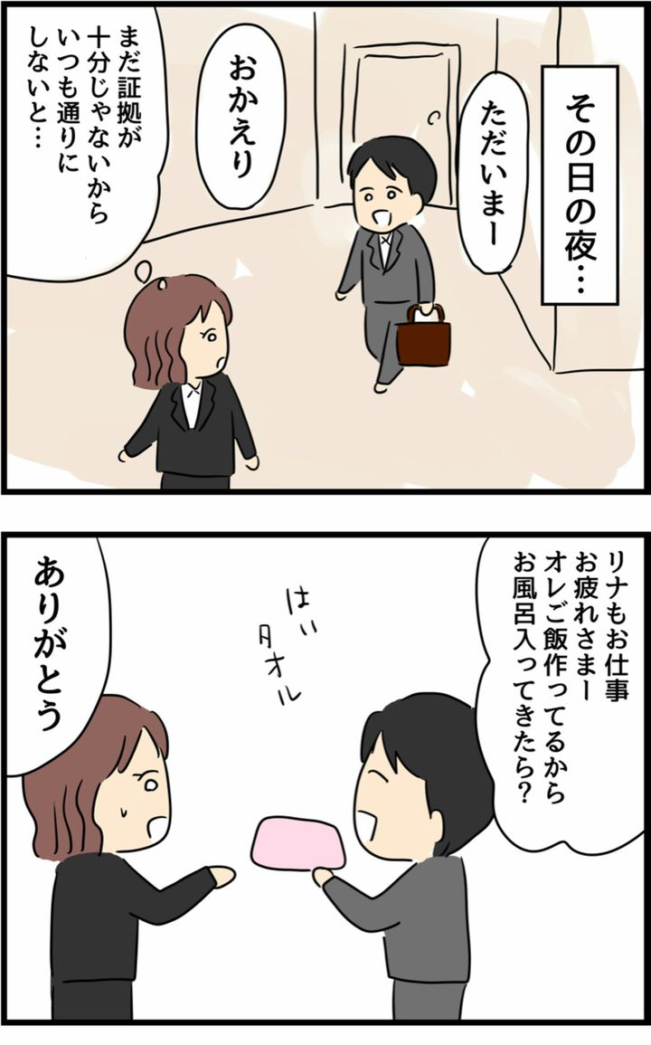 普段はとても優しくて思いやりもある夫…裏での姿を知ってしまった今、その優しさを前にとても複雑そうなリナさんの心境が伝わってきますね。