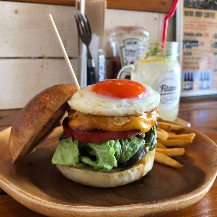晴れの日は、テラス席で海を眺めながらハンバーガーを頬張るのも良し‼︎