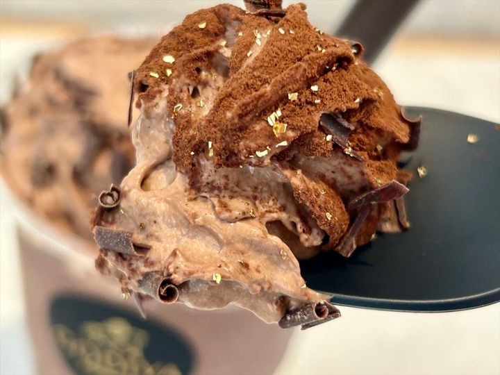見た目の大きな違いは、上部のチョコレートホイップクリームのトッピング。チョコチップや煌めく金粉があしらわれ、華やかなビジュアルに、気分も高まります!