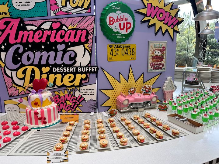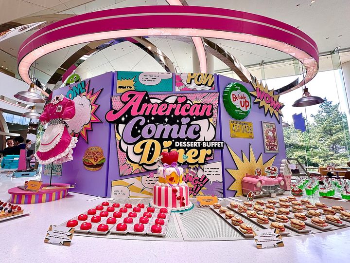 3. とにかく映えるデザートビュッフェ「American Comic Diner」でかわいい世界に潜入〜🫧🔫🗯️💜💞【ヒルトン東京ベイ】