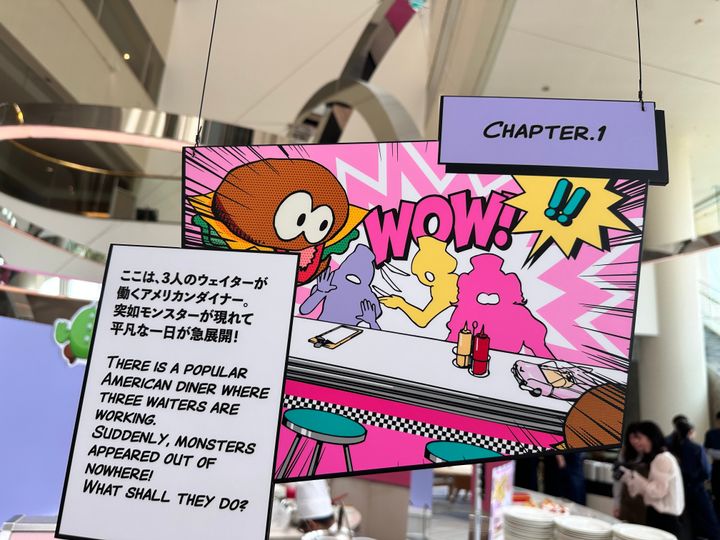 今回のコンセプトは、“平和なアメリカンダイナーに訪れたハプニング🗯️🥪” 3人のウェイターの前に現れたモンスターを相手に バブルガンで戦う というものです♥︎