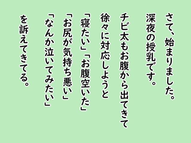 てる子さんの寝れ寝れオーラ・・・届きませんでしたね(笑)チビ太くん、お腹が空いたのでしょうか?それともオムツ??