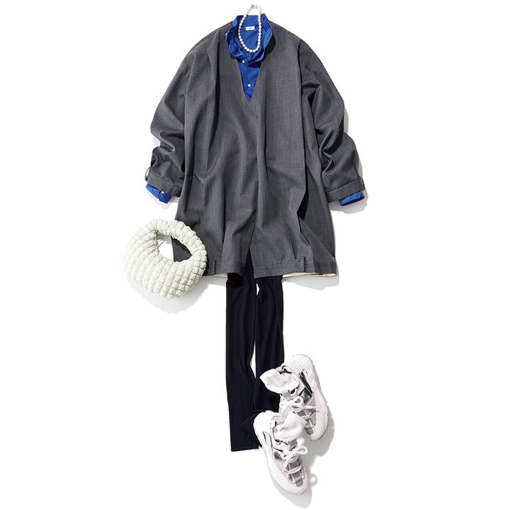 【通勤スニーカー】はシルバーで旬見え!モードなスタイルにもマッチ