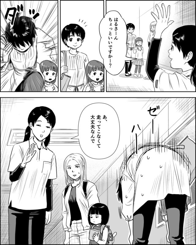 こども支援施設で担当の保育士さんを探すあやこさん、保育士の花田先生と初めて挨拶しても喋ろうともしないゆみかちゃん・・。花田先生に保護者同士の交流会についてお話を聞いていたところ、「はるさーん」と声を掛けた人を見て「あれってさっきの・・」とあやこさんが思っていると・・