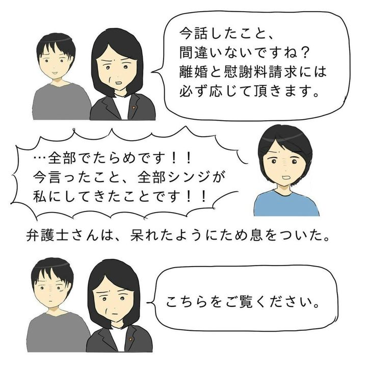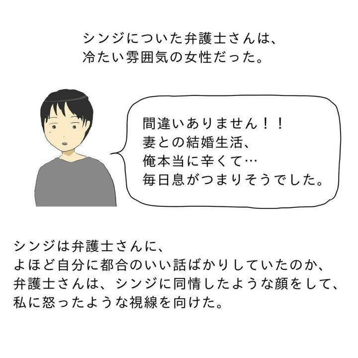 被害者と加害者が一気に逆転する妻の証言を、夫の弁護士はにわかには信じられないようでした。