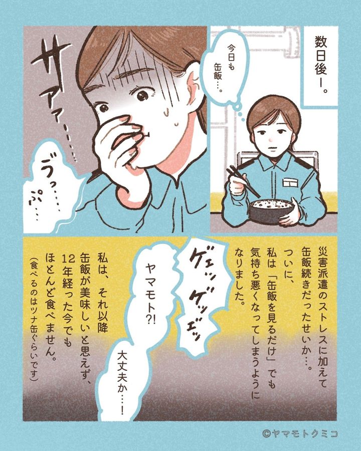 災害派遣の期間、缶飯を完食し続けている隊員ももちろんいました。ただ、缶飯が身体に「合う」「合わない」は、あるようです...。