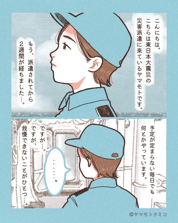 海上自衛隊員として護衛艦に乗り、炊き出し、救助者の支援、燃料や真水の提供、救助者や遺体の捜索など様々な支援をしていたという、ヤマモトさん。現場にいた女性隊員はわずか。「だからこそ“女性視点”での支援がとても大切だと感じた」と、当時を振り返ります。