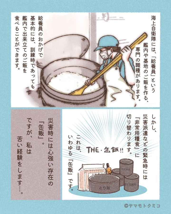 東日本大震災の災害派遣は、緊急時だったこともあり、物資の調達もギリギリでした。そんな中で、缶飯を頂くことはできる環境は、とてもありがたいことだと思います。